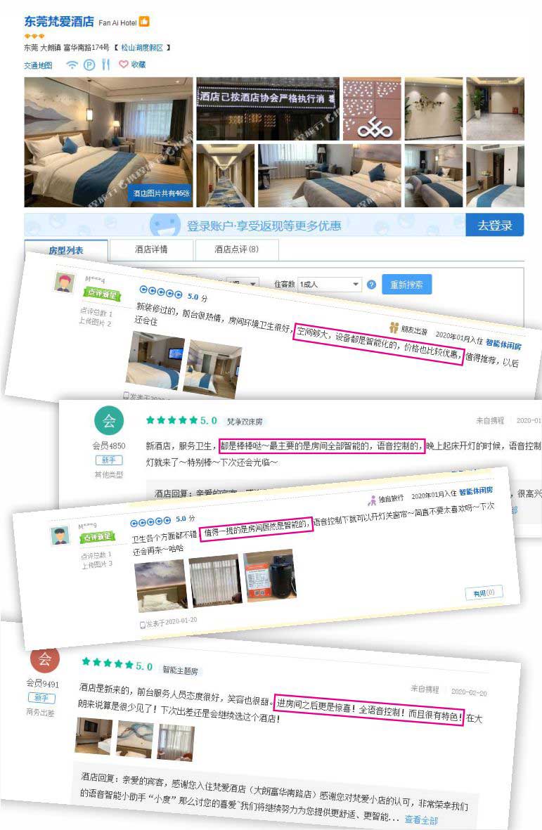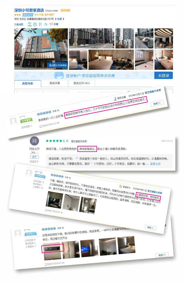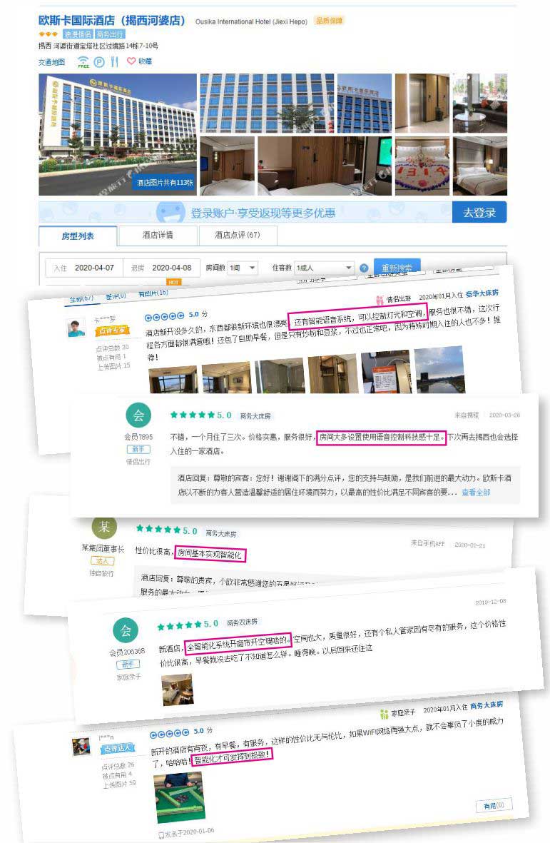 部分合作酒店的客人评论截图